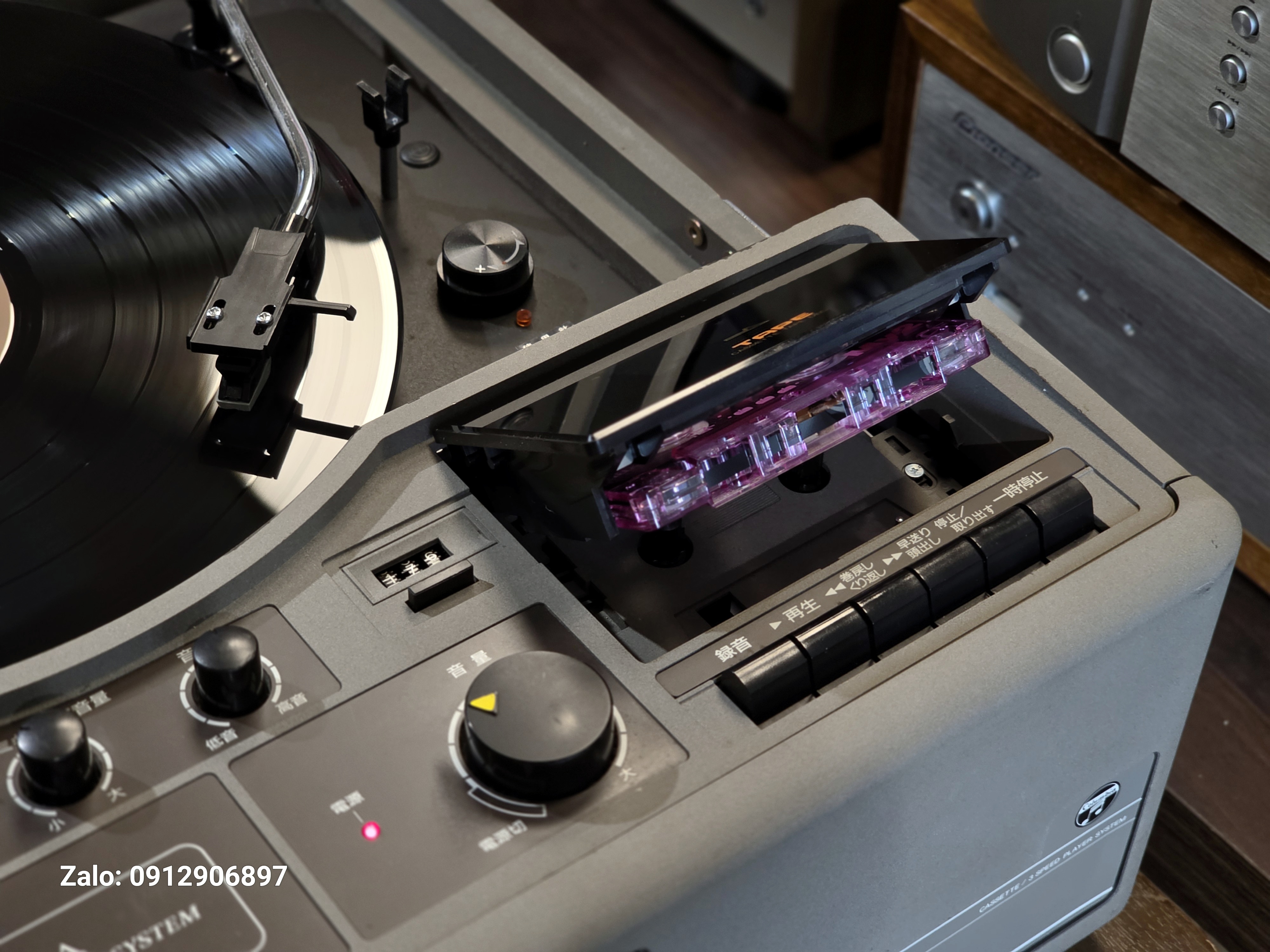 Máy kết hợp 2 trong 1: đĩa than (33/45 vòng) & cassette deck. Loa toàn dải tích hợp, âm thanh mộc mạc, ấm áp, đúng chất analog. Thiết kế vali kim loại sơn xám cực “cool”, bản lề và khoá chắc chắn. Made in Japan, điện 100v, công suất tiêu thụ 14W – tiết kiệm và bền bỉ. Có ngăn chứa dây nguồn tiện lợi ngay phía sau.