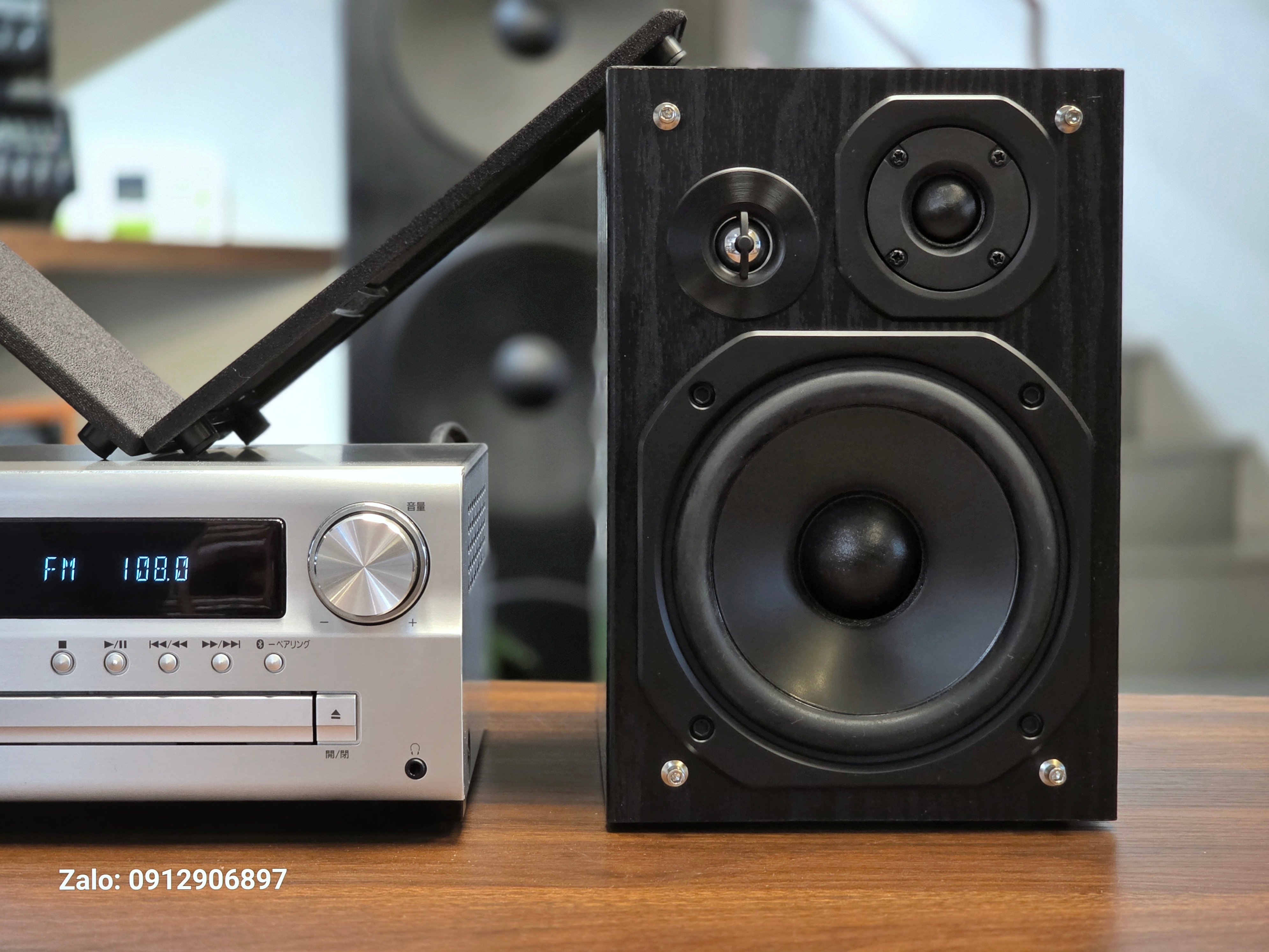 Điện 100v, hàng đấu mạng Nhật full phụ kiện và catalogue, đẹp như mới ạ. Kích thước: ngang 60 × cao 24 × sâu 27cm, phòng 25m2 chơi thoải mái nhé ae, không sợ kén thể loại nhạc 😉