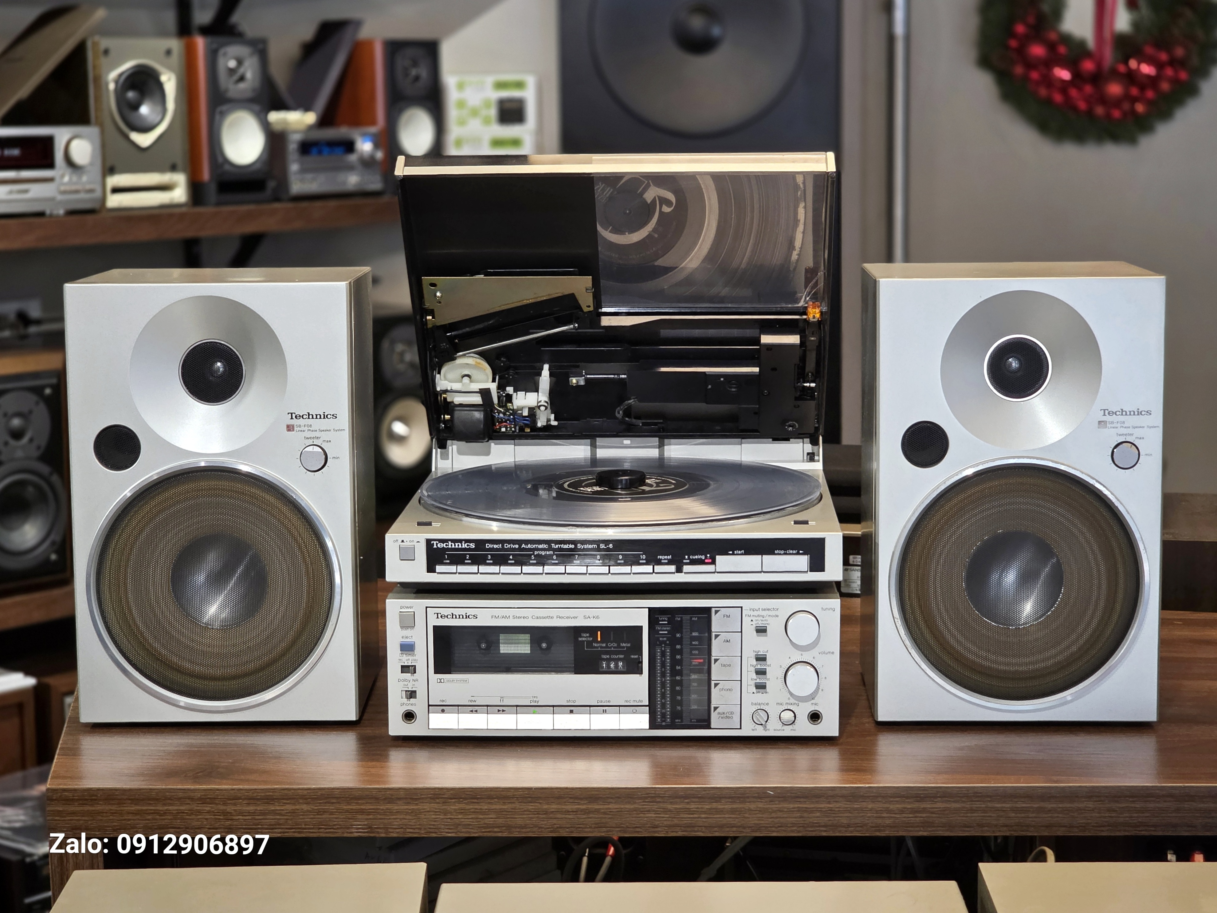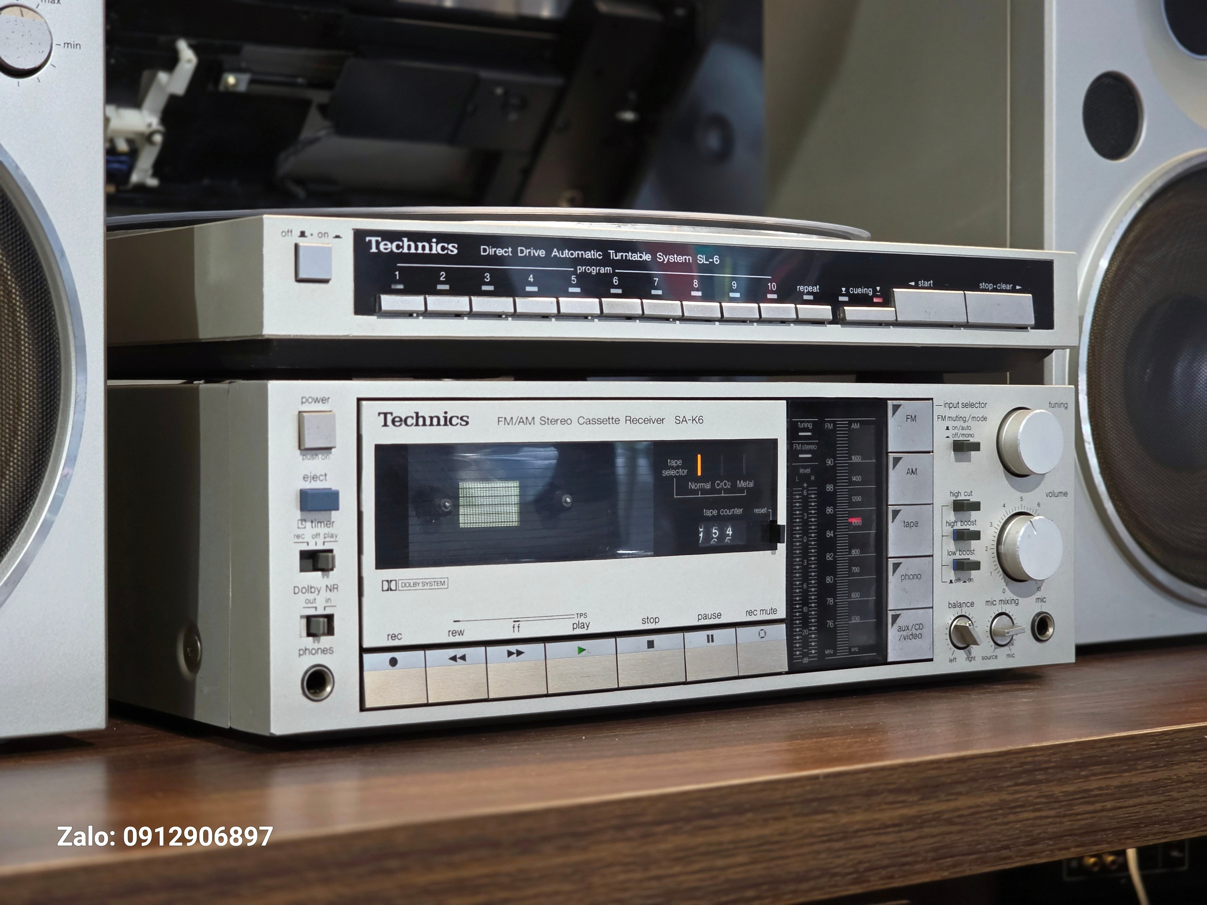 Dàn mâm than Technics SL6 full bạc, thiết kế vuông vức chuẩn chỉ, đặt cạnh chồng sách hay lọ hoa đều đẹp xuất sắc. Em nó còn cân tất cả các nguồn nhạc từ LP, Cassette, Radio AM/FM 90 đến Aux với chất âm ngọt lịm.
